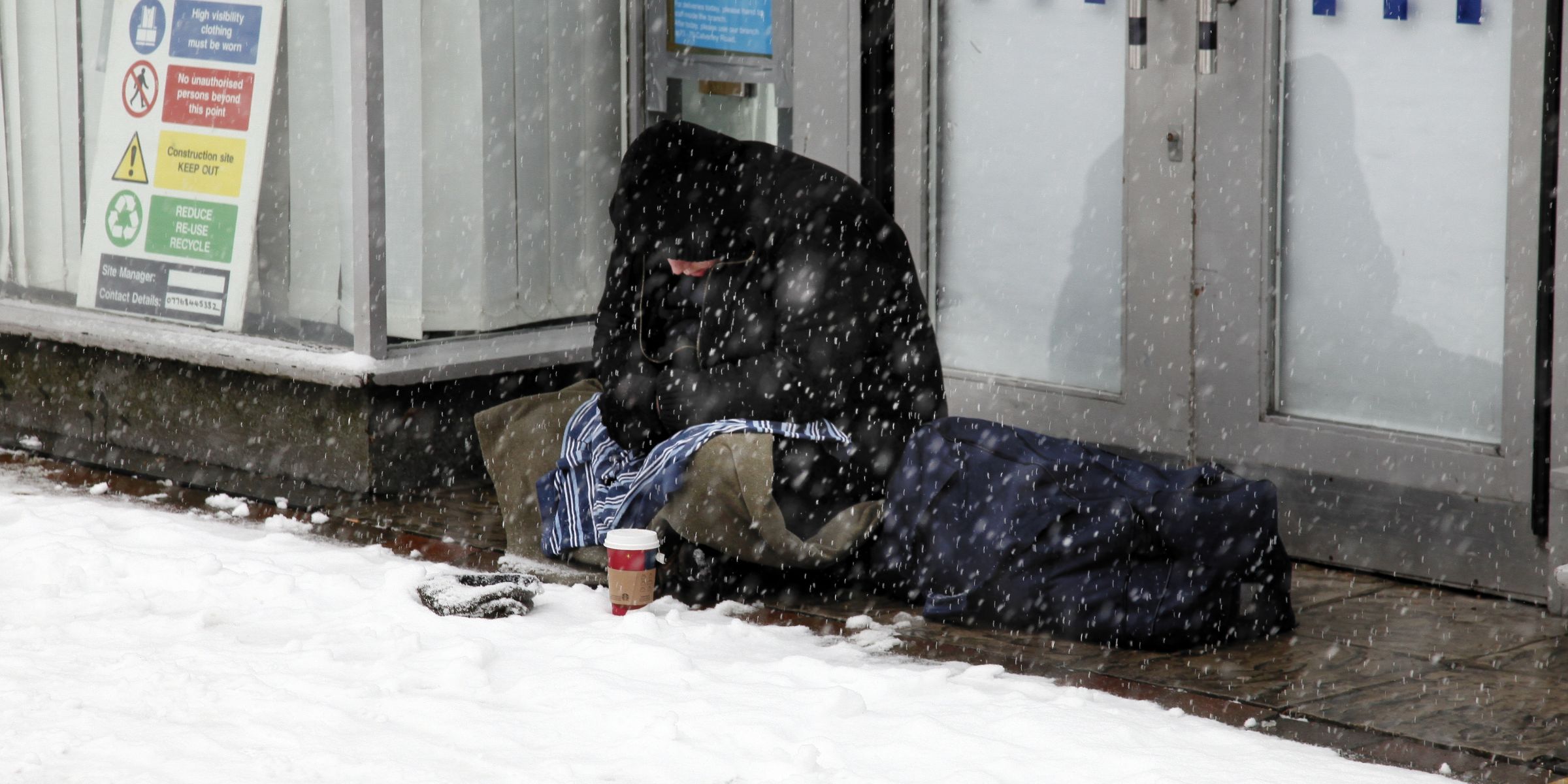 "Here," Leo said, crouching down beside the man. "It's not great coffee, but it's hot."
