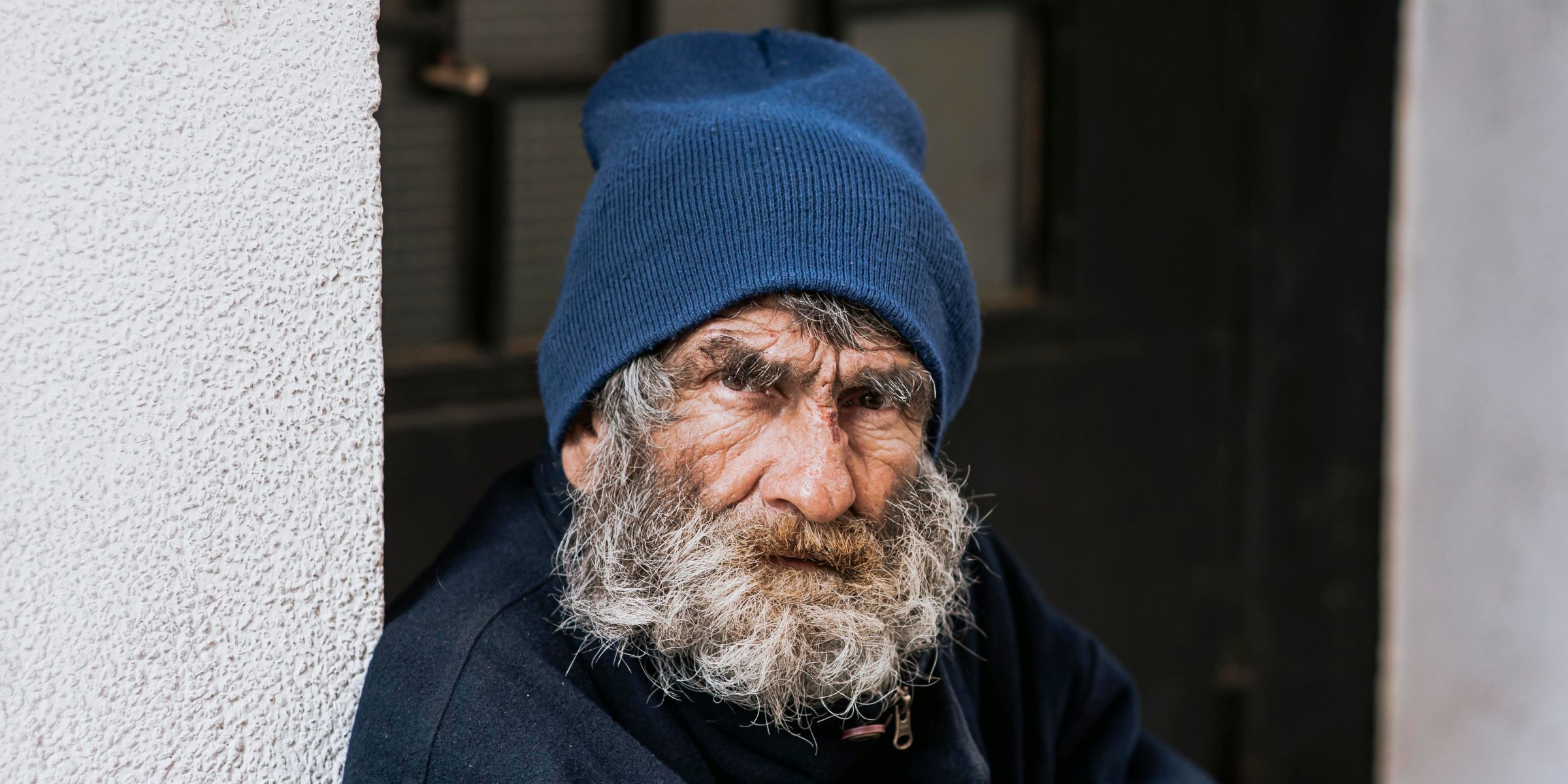 He was probably mid-60s, with a tangled gray beard, street-worn skin, and a dirty coat that looked as if it had tales to tell.
