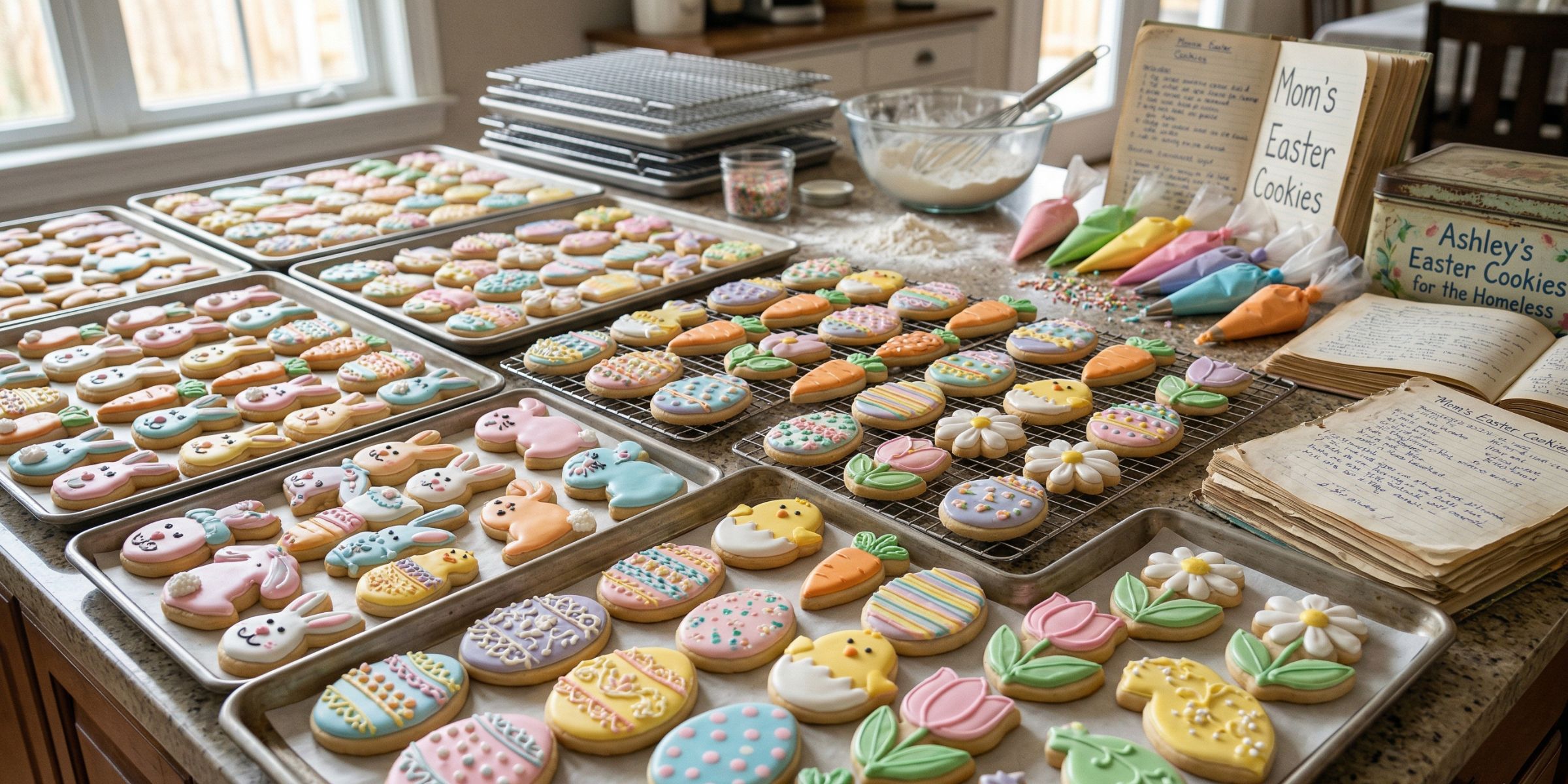 On Easter morning, we packed every cookie, row by row, into little pink boxes. Ashley checked each one.